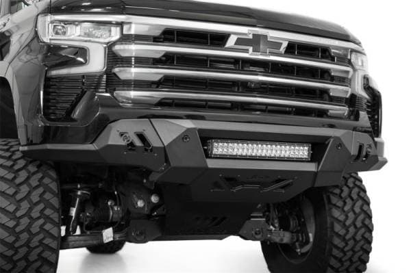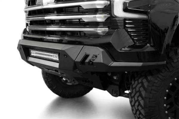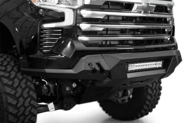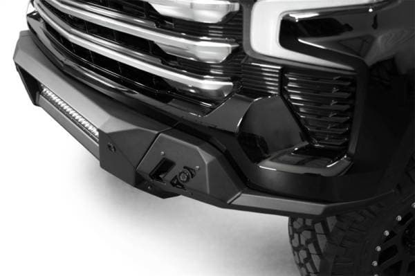 Our Black Label Front Bumper was designed to complement the factory style, and features unrivaled fitment and an easy installation. The Black Label line is the most affordable series we've ever released. At the center of the bumper is a mount for a 20-inch LED light bar for supplemental lighting on the trail or the worksite. The OEM parking sensors retain full functionality with integrated mounting points. The design retains full functionality of the adaptive cruise control feature without the need for a relocation bracket. The Black Label Front Bumper is finished in a hammer black powder coat, while the accent panels are finished in satin black. As always, this is fully bolt-on and Made in America.