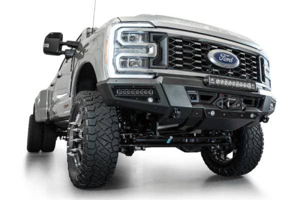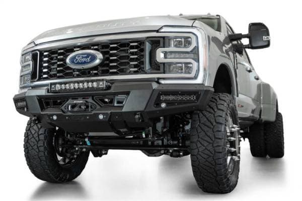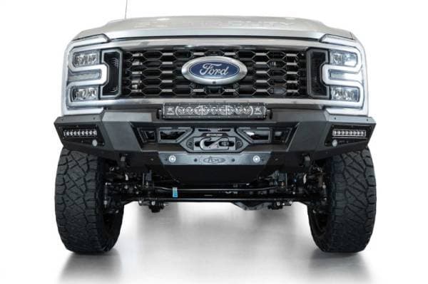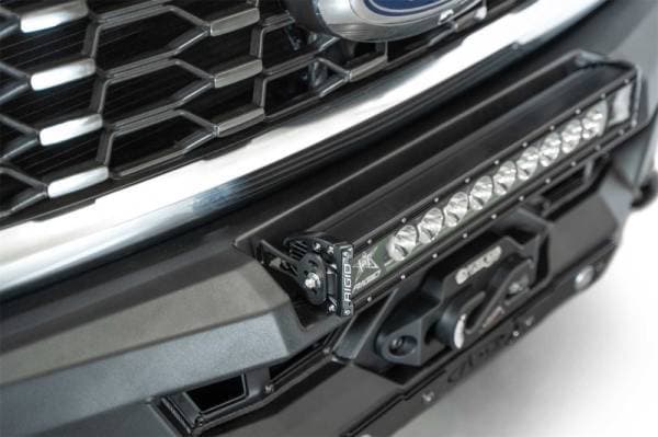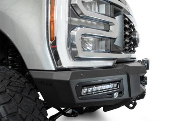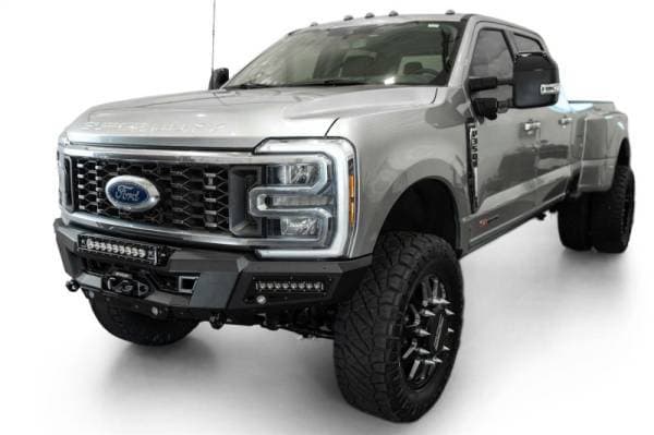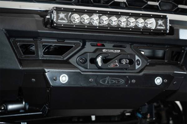 Our Phantom Series Winch Front Bumper features seamless styling & utility that is the highlight of your build. A modular hidden winch mount sits behind satin black accent plates, and can fit all standard Warn winches (will not fit Zeon Series). 1-inch thick clevis mounts that take ¾-inch D-rings provide even more recovery options. A recessed universal light pocket provides options for either a 20-inch light bar or (6) 3-inch light pods. Additionally, each wing of the bumper features mounting points for 10-inch SR light bars. A 3/16-inch heavy duty aluminum skid plate offers lower front-end protection. OEM parking sensors are integrated into the bumper's design, ensuring you retain full functionality of the feature. The adaptive cruise control feature is also retained when relocated to the grille with our ACC bracket. The bumper is finished in a durable 2-stage hammer black powder coat and features a fully bolt-on installation. As always, this is proudly made in America.