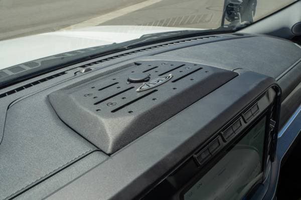 2023-Up Ford Super Duty - Dash Mount - In Hammer Black With Raw Brushed Stainless Steel Logo