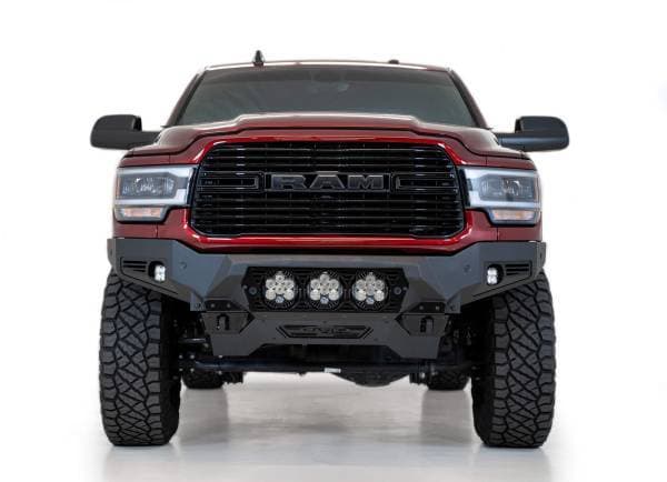 The Addictive Desert Designs Bomber Front Bumper is the slimmest fitting design for your 2020 Ram 2500. A modern plate steel design gives a clean look, while the full 3/16 in. aluminum skid plate saves on weight. Reinforced mounts for 3/4 in. D-Rings bolt straight to your frame for unrivaled strength. Three different lighting options are available: 4 Rigid 360 6 in. light mounts, 3 Baja Designs LP6 light mounts, or two 20 in. light bar mounts. Each bumper comes with two additional cube light mounts behind the side panels. As always, this bumper is fully bolt-on and made in America.