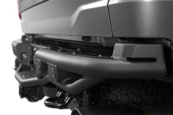 Our Race Series Rear Bumper features a low-profile design inspired by high speed desert racing. Supplemental off-road lighting options are provided by two integrated light mounts for Rigid SRM or Baja S2 lights towards each side of the bumper. The Race Series' tubular design closely follows the body lines of your truck. With this bumper, you don't need to worry about sacrificing high-end style for utility. The Race Series rear bumper also retains your OEM parking/backup sensors and license plate lights. The factory trailer plug remains easily accessible as well. The bumper is finished in a resilient dual-stage hammer black powder coat. A satin black aluminum step plate provides two-tone styling in addition to added grip. Installation is straightforward with its fully bolt-on design. As always, this is proudly made in the USA.