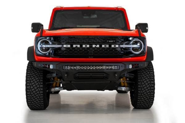 For those who are looking for a sleek, low-profile front bumper for their 2021 Bronco, the Stealth Fighter hits the mark. Designed for performance and clearance off-road, it also brings bold styling to the front end. At the center of the bumper are inset mounting points for up to a 30-inch radius light bar, or 8 cube lights. Towards the ends of the bumper are 2 additional inset mounting points, that can take a cube light each. This design retains the OEM parking sensors, and we include plugs if your model does not have sensors. Our adaptive cruise control relocation bracket is available as well.