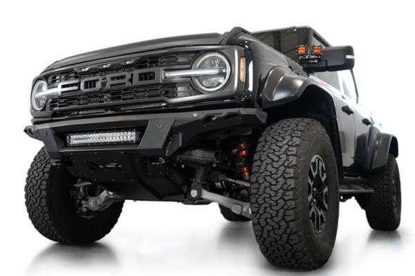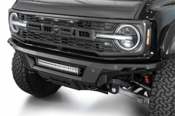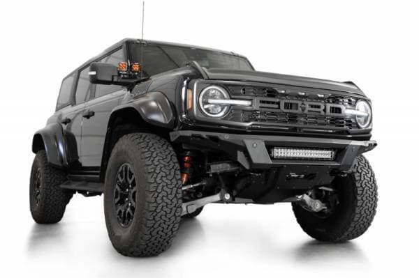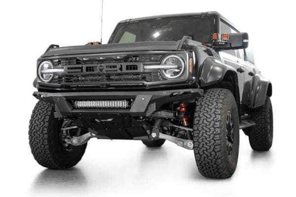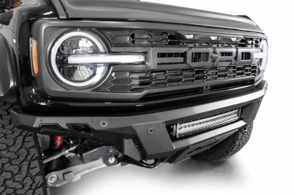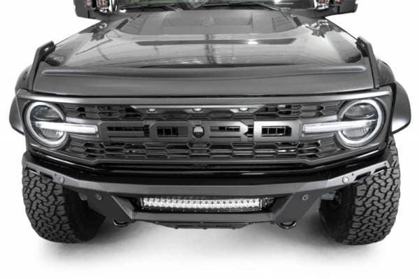 The Phantom Series Front Bumper was engineered with a low-profile, knife's edge design, giving your rig an even more aggressive stance than factory. At the center of the bumper is an inset mounting point for a 20-inch Radius LED Light Bar. Alternatively, (5) 3-inch Light Pods can be mounted at this same location. We include a heavy duty 3/16-inch aluminum front skid plate, which replaces the incompatible factory skid. The skid plate and accent panels are finished in a satin black powder coat, while the bumper is finished in a durable hammer black powder coat. The Phantom retains OEM features such as the parking sensors & adaptive cruise control (ACC Relocation Bracket is required.) Provisions for adding frame mounted recovery points are included in the design. As always, this is fully bolt-on and Made in America.