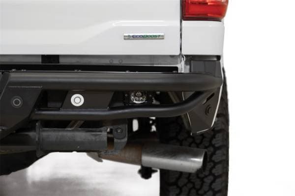 Our Rear Bumper provides an elevated design and off-road utility. It is made from .120-inch wall steel tubing and finished with a 2-stage hammer black powder coat. The top plate is made from satin black powder coated aluminum. The bumper retains the OEM backup sensors, license plate lights, hitch & trailer harness, and tow hooks. It features two 3-inch LED cube light mounts. The bumper is fully bolt-on. Made in the USA.