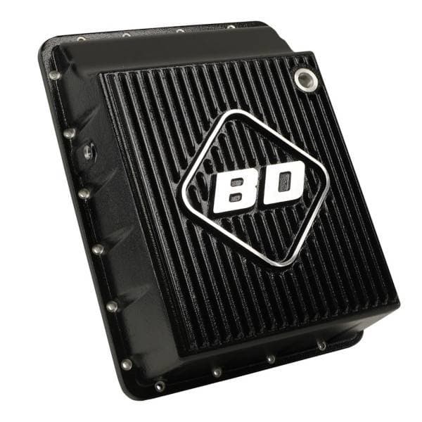 High volumes of cool oil equate to long transmission life. BD's transmission pans increase oil capacity, while their aluminum construction and heat-dissipating fins keep temperature down. As an added bonus, the pan's increased rigidity prevents case twisting. Kit includes screws, plugs, a magnetic drain plug, OEM style gasket and temperature sending unit port.