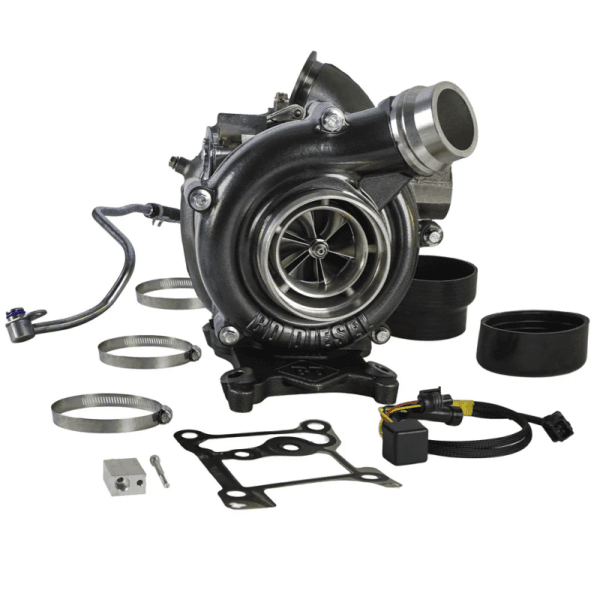 The drop-in, stock-appearing Screamer Stage 2 Retrofit GT37 turbo kit for the early model Ford 6.7L Powerstroke that not only replaces the problematic and small GT32 Single Sequential Turbocharger (SST), but also utilizes modern turbo technology that delivers increased airflow without compromising on low end response. Boost pressure can be increased to improve horsepower potential. Everything you need is included to drop right in place of the old unit, no extra pieces needed. The Powerstroke Screamer Stage 2 Retrofit turbo will require tuning to ensure no faults codes are set - to optimize the high flow we suggest a tune by PPEI. We recommend the Screamer Stage 1 Retrofit kit (1045824) for all trucks with the stock CP4.