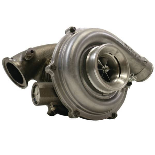Direct drop-in replacement turbo stock appearance. 10-Blade turbine wheel with taller vanes and larger 66mm exducer. BD technology keeps exhaust vanes in an efficient zone for improved turbine performance. Perfect performance replacement for all trucks with stock injectors. Billet 6x6-blade 61mm inducer/ 82mm exducer compressor wheel. Full blade compressor wheel amplifies the 6.0L turbo noise with aftermarket air box. Outperforms the Powermax even with stock injectors. Can still tow a trailer.