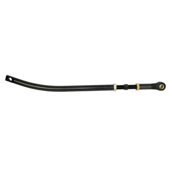 Double coated Adjustable Track Bar is built from rigid 1-3/8 Drawn Over Mandrel seamless heavy wall 0.313 tubing with formed and precision welded collars that have durable heavy duty Poly bushings. With the OEM ball joint design frequent maintenance is required to prevent side-to-side movement of the front axle which can cause wear hammering wandering and the dreaded Death Wobble. BDs Track Bar is the perfect solution for steering stability and is a great compliment to BDs Steering Box Stabilizer. Adjustable to accommodate up to 4in lifts!
