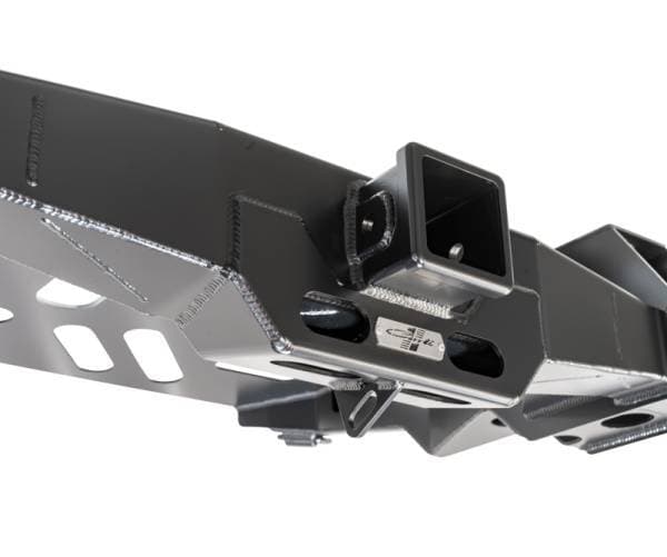The Carli trophy hitch is the ultimate solution to the customer wanting to carry a matching spare tire in their factory location with no sacrifices.