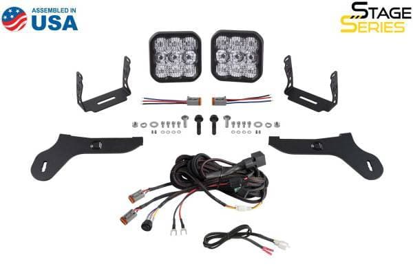 Features Bolt-on fitment compatible with Ford Raptor 2017-2020 Ultra-high intensity, with custom-engineered TIR optics Selectable backlight color, with eight color options Torture-tested, heavy-duty construction Assembled in USA   Overview Perfect Fitment. The Bumper LED Pod Light Kit compatible with Ford Raptor 2017-2020 from Diode Dynamics allows you to mount two SS5 LED pods on the factory bumper. These application-specific brackets were CAD-designed to bolt into place using factory mounting points. Designed for Performance. Featuring the highest output intensity of any 5-inch LED pod on the market, these lamps have been designed for maximum functionality, with patented technology and custom-engineered TIR optics, all in a durable package. Selectable Backlight. The Stage Series 5inch LED Pods included in the White kit feature a selectable backlight with eight different color options, perfect for an extra styling accent, or for more visibility when you’re not using the main beam. Selecting your backlight color is easy - simply alternate the power on and off. There’s no complicated programming with a controller! The SS5's backlight fully illuminates the TIR optic, providing unique accent lighting that you won't find on other LED pods. NOTE: Due to the yellow lens, the Yellow kit is only available with an Amber backlight color. NOTE: The existing mounting points must be drilled out larger in order to secure the bracket.