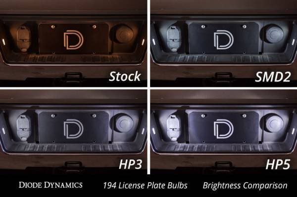 FeaturesDiffused lens design for even spreadProven performance highly reliableIncreased output with LED AppearancePlug and play simple installationOverviewDesign. The 194 HP3 LED bulb is a compact simple LED replacement with proven performance. The single diffused optic spreads light in the original lamp for OEM-style appearance and function. With its dual-lead contacts it will fit snugly in the socket and its light weight means it won't vibrate loose over time.Reliability. Unlike other bulbs on the market this bulb is built with constant-current circuitry along with transient suppression. That means this bulb will last for years not months with no flickering or failure. And like every Diode Dynamics product it's backed by an industry-leading three-year replacement warranty.Brightness. With 56 lumens of true measured output the HP3 LED will provide about double the total light compared to your original 5W 194 or 168 sized bulb. Its even spread in the housing makes for a good amount of useful light whether mounted in a straight or side-plug orientation.Colors.In addition to vibrant colors of blue red amber and green the 194 HP3 is available in a number of white color options. These include a cool white 6000K warm white 3000K a 5000K or pure white and a 4000K or natural white. Whether you want a modern cool white appearance or a traditional warm white color with more output we have the color to fit your need!
