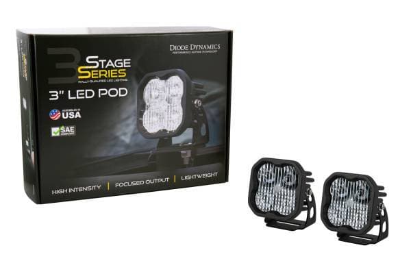 Included in the box: Two (2) SS3 Standard LED Pods One (1) Heavy Duty Dual Output 4-pin Wiring Harness Two (2) Mounting brackets Mounting hardware .