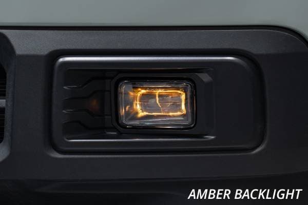 Features Adds SAE-compliant fog lights compatible with Ford Maverick 2022+. OEM appearance with included textured bezel. Sharp, asymmetric beam pattern achieves 100-degree total spread. Distinctive integrated amber backlight. Plug and play main beam, no additional wiring needed. Engineered and assembled in USA. Overview While this truck doesn’t come with a factory fog light option, there is still a need for light directly in front of the vehicle to increase your visibility in foggy, dusty, snowy, or rainy conditions. Headlights simply weren’t designed to provide this kind of visibility, so that’s where we come in. Introducing our new add-on Elite Series Fog Lamp Kit compatible with Ford Maverick 2022-2024! This kit allows you to mount two SAE-compliant fog lamps in the factory bumper, while maintaining an OEM appearance thanks to the custom-designed bezel. Output that Outperforms. The Elite Series Fog Lamp is built around a highly-engineered single-piece PMMA lens. This optic was carefully designed using advanced optical simulation software to produce an asymmetric light pattern that is wider than any other aftermarket fog lamp on the market, with an 100-degree spread of highly intense light. Even with this extremely wide band of light, the pattern is extremely smooth throughout, with an extremely sharp cutoff to avoid glare to other drivers, including a BMW-style “color flicker” at the very edge of the pattern. Diode Dynamics engineers accomplished all this while still meeting SAE F3 fog light standards, for legal on-road use. Please check your local laws and regulations for aiming, installation, and applicability. Backlight Functionality. All Elite Series Fog Lamps come standard with an integrated amber accent light.