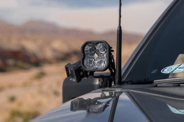 Features Bolt-on fitment compatible with Ford F-150 2021+. Allows you to mount two Stage Series LED Pods above the hood. Utilizes existing mounting points and hardware for a simple installation. Thick-gauge stainless steel construction. Low-profile design. Overview Perfect fitment. The Stage Series SS3 Backlit Ditch Light Kit compatible with Ford F-150 2021+ allows you to easily mount two SS3 or SSC2 Backlit Pods above the hood. These application-specific brackets were CAD-designed to install using factory mounting points. No cutting or drilling required! This kit features a low profile design while minimizing glare, and will not interfere with raising or lowering the hood. Backlight Functionality. The SS3 LED pods included in our Stage Series Ditch Light Kits feature a brilliant Amber backlight. This integrated backlight gives you an additional accent light, along with the main beam. The backlight fully illuminates the TIR optic, providing a more unique and modern look than the small indicator LEDs found in other products. To power the backlight, use the included harness to tap your desired vehicle function. Built to last. The brackets in this kit are constructed out of thick-gauge stainless steel. Unlike other options made out of mild steel, these brackets are full stainless steel and won't corrode over time. With their thick-gauge construction, you also won't experience any vibration or bouncing while driving. Focused. Traditional optics like reflectors or simple lenses lose light internally and to glare, so not all of the light shines on target. Instead, the custom-engineered TIR optic in the SS3 collects all of the light from the LED, and directs it only where you need it, drastically reducing glare and improving total efficiency