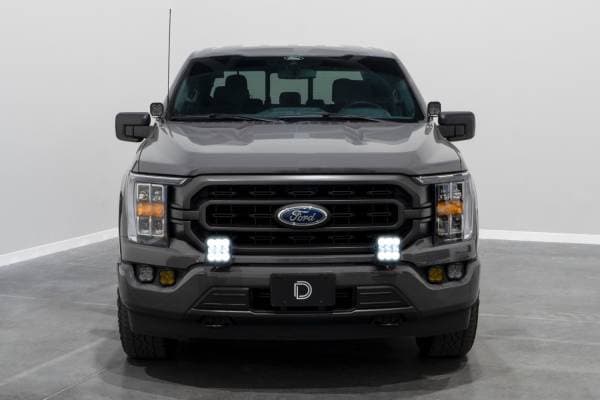 Features Bolt-on fitment compatible with Ford F-150 2021+ Ultra-high intensity, with custom-engineered TIR optics Selectable backlight color, with eight color options Torture-tested, heavy-duty construction Assembled in USA Overview Perfect Fitment. The Bumper LED Pod Light Kit compatible with Ford F-150 2021+ from Diode Dynamics allows you to mount two SS5 LED pods on the factory bumper. These application-specific brackets were CAD-designed to bolt into place using factory mounting points. Designed for Performance. Featuring the highest output intensity of any 5-inch LED pod on the market, these lamps have been designed for maximum functionality, with patented technology and custom-engineered TIR optics, all in a durable package. Selectable Backlight. The Stage Series 5inch LED Pods included in the White kit feature a selectable backlight with eight different color options, perfect for an extra styling accent, or for more visibility when you’re not using the main beam. Selecting your backlight color is easy - simply alternate the power on and off. There’s no complicated programming with a controller! The SS5's backlight fully illuminates the TIR optic, providing unique accent lighting that you won't find on other LED pods. NOTE: Due to the yellow lens, the Yellow kit is only available with an Amber backlight color. NOTE: The existing mounting points must be drilled out larger in order to secure the bracket.