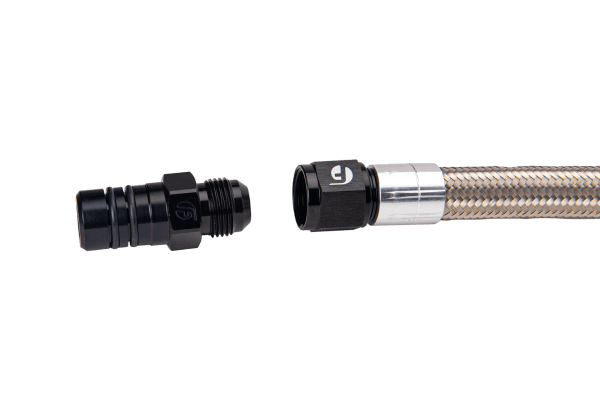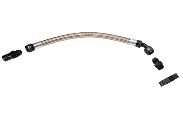 Put the finishing touches on your truck with this high quality Cummins Turbo Drain Tube Kit. The tube is braided stainless steel for durability on the exterior, and corrugate teflon tubing for flow and maximum flexibility. The fittings are 6061 aluminum w