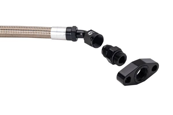 Kit contains Drain Tube, Adapter, Flange Adapter, Drain Gasket, 7/8-14 to -10AN Fitting, 4 Head Bolts