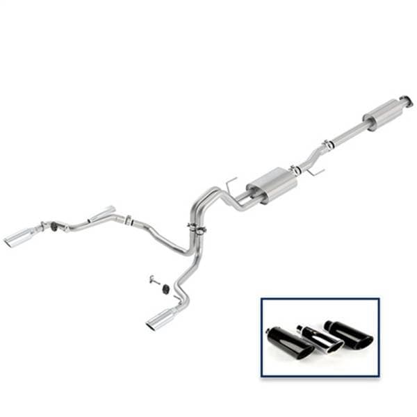 Sport Cat-Back Exhaust System; 304 Stainless Steel; Dual Rear Exit; Incl. Resonator/Connecting Mid Pipe/Muffler/Dual Tail Pipes/4 in. Chrome Tips/Hardware