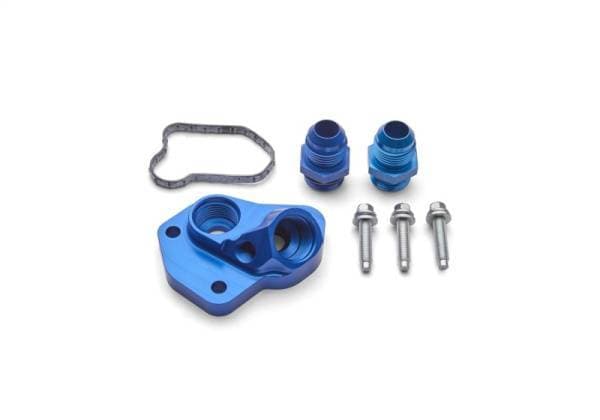 Remote Oil Filter Adapter; Billet Aluminum Oil Line Adapter To Engine Block; Incl. Two -12AN Male Fittings/O-Rings/Mounting Hardware; Blue Anodized Finish