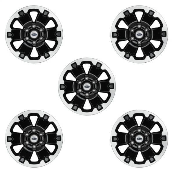 Wheel Kit; 18 in. x 8 in.; 55mm Offset; Set of 5; Incl. TPMS Sensor/Bronco Center Cap; Black Machined Face w/Gloss Black Finish