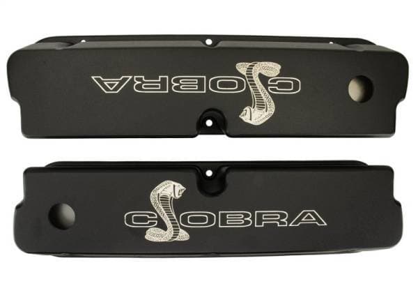 Valve Cover; Die-Cast Aluminum w/Baffle; Black Satin Finish; Cobra Snake Logo