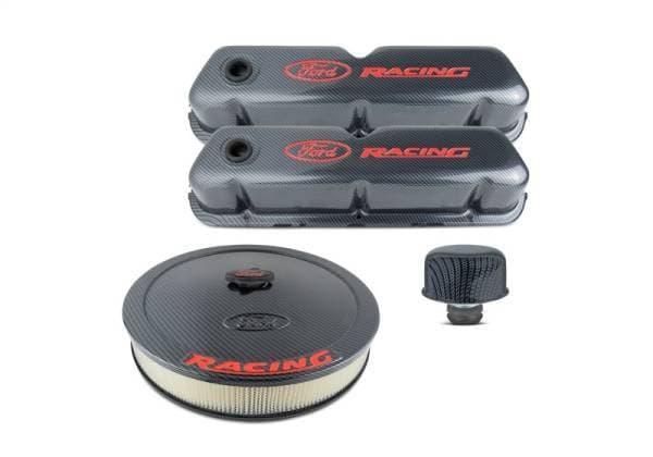Complete Dress Up Kit; Carbon Finish; Incl. Valve Cover/Air Cleaner; Ford Racing Logo