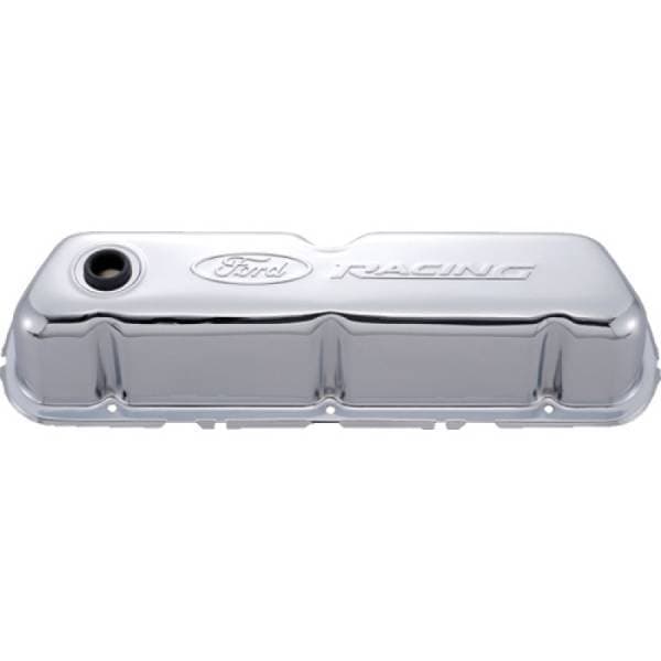 Valve Cover; Stamped Steel; Chrome; Embossed Ford Racing Logo