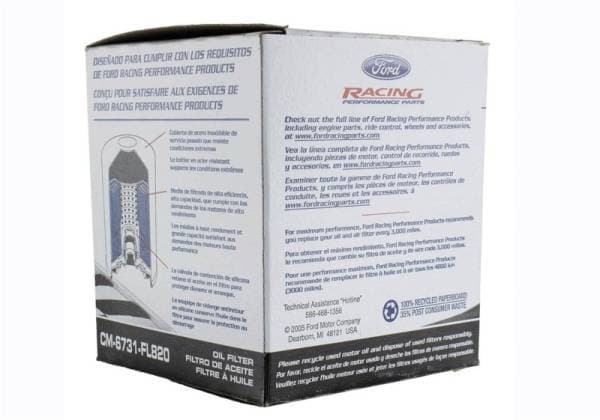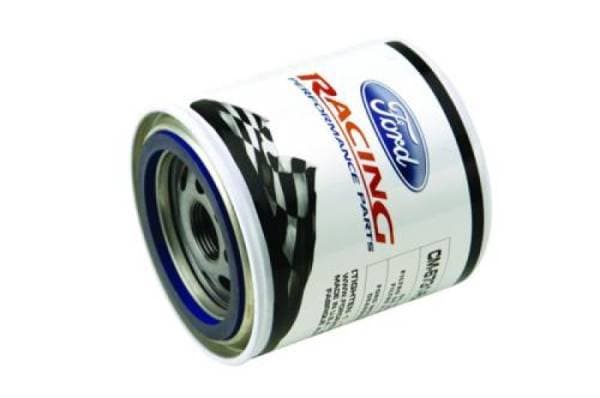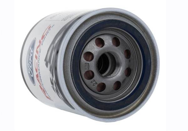 This high performance oil filter from Ford Racing features a heavy gauge base and canister for higher burst strength and impulse fatigue resistance. A synthetic-polymer/cellulose-fiber blend filter media offers up to 50% more filtering capacity then standard filters. The benefit to you is improved filtering efficiency and longer oil filter life when using either standard or synthetic motor oils. A high quality silicone anti-drain back valve prevents oil from escaping the filter when the engine is off. A non-stick sealing gasket makes for easier installation and removal.