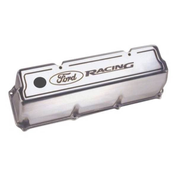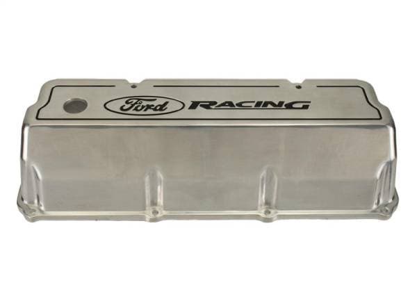 Valve Cover; Die-Cast Aluminum w/Baffle; Polished Finish; Ford Racing Logo; 4 in. Tall