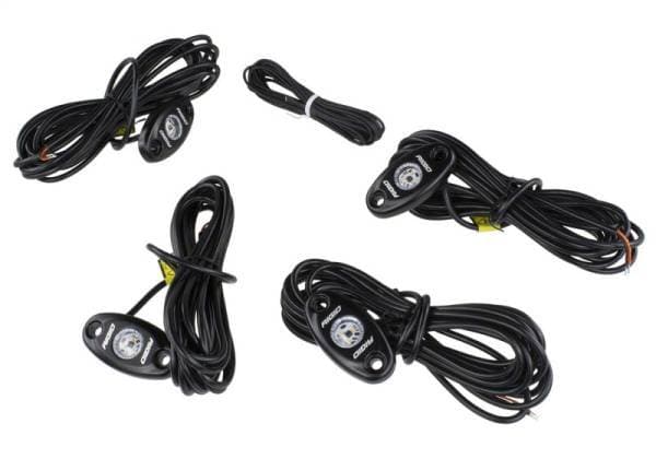 Ford Performance worked with one of the most recognized names in Off-Road lighting, RIGID(R), to offer Off-Road Light Kits which work with Ford vehicles. These lights are mounted in the wheel well or other strategic locations to enable off-road vehicles to illuminate trails as well as difficult, rocky terrain. This kit contains 4) RIGID(R) LED Rock Lights (Amber Light) plus 15-foot leads to each light, power distribution block, switch, and light mounts. RIGID(R) Rock Lights contain a high quality black aluminum housing with a durable polycarbonate lens. Warning-this part has been designed and is intended for off-highway application only. Installation on a vehicle intended for use on public roads may violate U.S., Canadian, state or provincial laws and regulations including those relating to emission requirements and motor vehicle safety standards. In addition, installation of this part may adversely affect the warranty coverage on your vehicle.