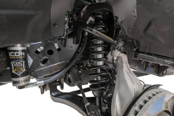 The ICON Vehicle Dynamics V.S. Series 2.5” remote reservoir coilover shocks w/ CDCV are an incredible upgrade for the front end of the 2015-2020 Ford F-150 2WD truck. ICON’s Vehicle-specific valving provides a sport tuned feel on and off-road while offering 1.75-3” of lift height adjustability for use of larger, more aggressive wheel and tire combinations. ICON's larger 2.5” shock body and increased piston area over stock components provides improved damping ability and outstanding ride characteristics across varying types of terrain. Remote reservoirs ensure optimum performance by increasing the duration of consistent damping regardless of situation, keeping the shocks at a cooler operating temperature during heavy use. The ICON CDC Valve upgrade is included for those desiring an easy way to tune the ride externally with 10 settings from soft to hard. When paired with ICON rear 2.0 Aluminum Series or 2.5 Series shocks, vehicle control will be balanced front to rear resulting in the best overall driving experience for your 2015-2020 F-150 2WD.