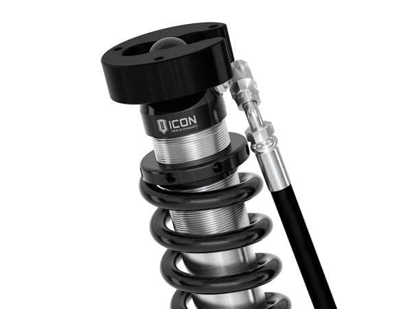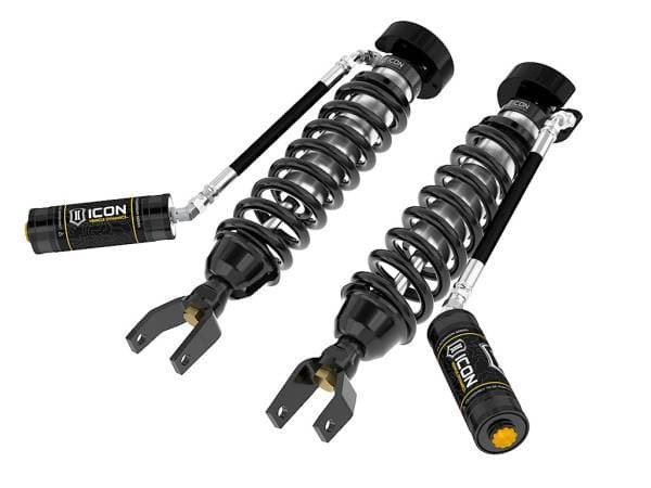 ICON Vehicle Dynamics V.S. 2.5 Series coilover shocks are an incredible upgrade for the front end of 2019-2023 Ram 1500 trucks. ICON’s Vehicle-specific valving provides a sport tuned feel on and off-road while 2-3” of lift height adjustability allows the use of larger, more aggressive wheel and tire combinations. The larger 2.5” shock body and increased piston area over stock components and application specific length to maximize wheel travel provide improved damping ability and outstanding ride characteristics across varying types of terrain. These remote reservoir coilovers will maintain lower operating temperatures and offer more consistent operation during extended or aggressive off-road use compared to internal reservoir versions. When paired with ICON 2.0 Aluminum Series or 2.5 Aluminum Series rear shocks vehicle control will be balanced front to rear, resulting in the best overall driving experience for your Ram 1500 truck.