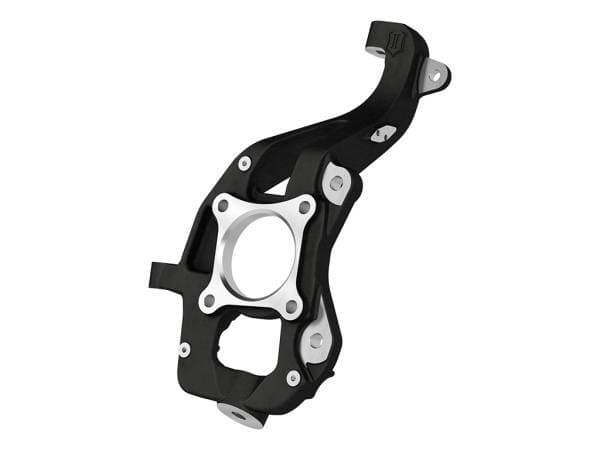 Upgrade your 2021-2024 Ford F-150 4WD to a Tremor “conversion” with the F-150 Front Knuckle Kit from ICON Vehicle Dynamics. The steering knuckle’s design replicates the suspension geometry of the Ford F-150 Tremor and when paired with ICON F-150 Tremor coilover kits the combination offers a 20% increase in front wheel travel, increased ride height with 3.5-4.5” of front lift over stock, as well as improved ball joint angles. Their single piece, high-strength CNC machined ductile iron construction ensures strength and have been engineered to withstand the stresses of aggressive off-road use while minimizing un-sprung weight and maintaining factory track width. These steering knuckles will stand the test of time with a durable black powder coat finish and are backed by ICON’s Limited Lifetime Warranty.