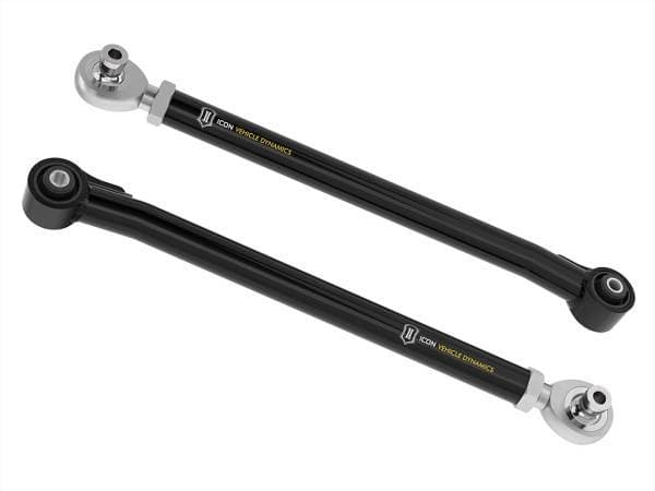 The ICON Tubular Rear Lower Link System helps free up rear axle movement on the 2021-2023 Ford Bronco to allow for increased suspension travel and articulation. Formed using 1 ¾” x .313 wall DOM Tubing for high strength, with CNC machined threaded ends and bushing housings, and feature a multi-stage black powder coat finish. These lower links are designed specifically for high clearance for reduced contact with trail obstacles and massive FK Rod End at one end, along with a dual-durometer, high angle greaseless bushing at the other end yields the best combination of maximum travel and articulation while isolating and damping road noise and vibrations. Hit the trail with the confidence of knowing your suspension components are covered by ICON’s Limited Lifetime Warranty.