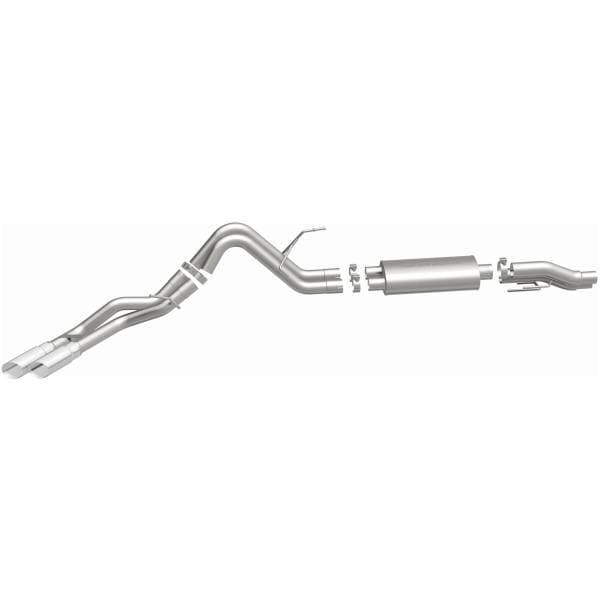 The MagnaFlow 2011-2014 Ford F-150 Street Series Cat-Back Performance Exhaust System brings out the personality of your 3.7L, 5.0L, 6.2L 2011-2014 Ford F-150 with our signature resonant, powerful engine tone and dyno-proven performance. Thanks to its fast-flowing, mandrel bent 3in. main piping and 1 Straight-Through mufflers ending in a Dual Same Side Behind Passenger Rear Tire exit with 3.5in. Polished Welded-On Double Wall Angle Cut Folded Edge tips, this Ford F-150 exhaust kit has the performance chops to match its sporty sound and appearance. Upgrade your ride to the next level with an exhaust that has the pipes to put other Ford F-150's to shame. With this system your vehicle will be producing Aggressive exterior and Moderate interior sound levels while leaving other cars and trucks feeling envious at every stoplight. Exhaust kit 15461 features a cat-back layout that replaces your ride's stock exhaust components from near the catalytic converter on back. Extensive 3D scanning during development has resulted in a direct-fit design that you can easily install yourself. 15461 is produced using CNC precision robotic manufacturing techniques and is backed by MagnaFlow's 1-year limited finish warranty and limited lifetime construction warranty.