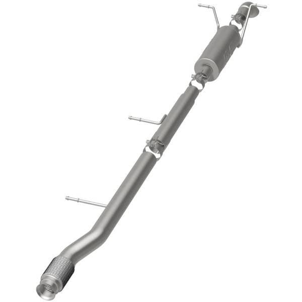 The MagnaFlow Off-Road Pro Series Cat-Back Performance Exhaust System 17146 brings additional off-roading prowess and our deep signature exhaust note to your Truck with a weight-optimized, dyno-tested, corrosion resistant and durable stainless steel design engineered to closely hug the undercarriage for improved ground clearance. Exhaust kit 17146 is engineered to produce Very Aggressive exterior and Aggressive interior sound levels. Extensive 3D scanning was used during the development of this Truck exhaust system to create a direct-fit design, enabling a do-it-yourself installation process. 17146's emissions-legal cat-back design replaces all your truck's exhaust components from the catalytic converter on back with its 3in. diameter mandrel bent main piping that passes through 1 Straight-Through mufflers before ending in a turndown before rear axle exit with 3in. Satin Clamp-On Single Wall Turndown Cut Edge tips. Exhaust system 17146 is produced using advanced CNC precision robotic manufacturing techniques and backed by MagnaFlow's limited lifetime warranty.