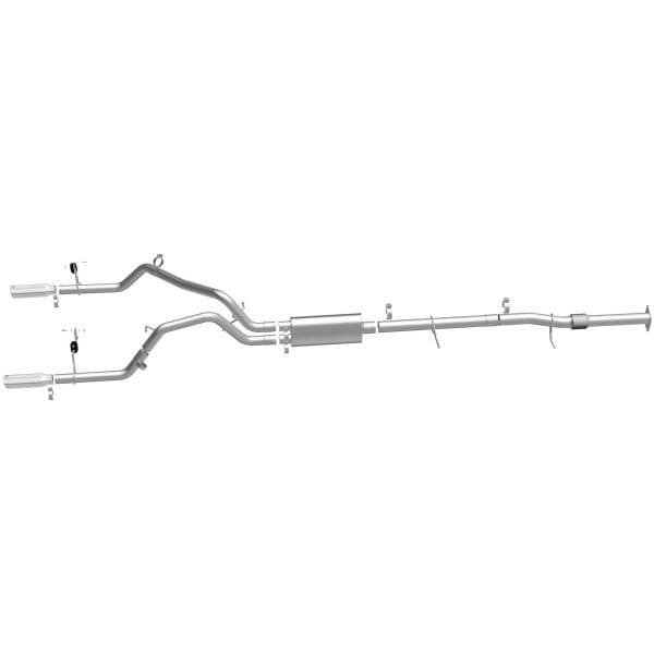 The MagnaFlow 2023 Chevrolet Colorado / GMC Canyon NEO Series Cat-Back Performance Exhaust System 19650 brings out the personality of your truck with our signature resonant, powerful engine tone and dyno-proven performance. MagnaFlow #19650 features fast-flowing, mandrel bent 3in. main piping, 1 straight-through muffler and a Dual Split Rear exit with 3.5in. polished stainless steel tips. This MagnaFlow truck exhaust kit has the performance chops to match its sporty sound and appearance. Elevate your truck to the next level with an exhaust that has the pipes to put other truck's to shame. With this exhaust system your truck will be producing moderate exterior and mild interior sound levels for a smooth and comfortable driving experience. Exhaust kit 19650 features a cat-back layout that replaces your truck's stock exhaust components from near the catalytic converter on back. Extensive 3D scanning during development has resulted in a direct-fit exhaust design that you can easily install yourself. 19650 is produced using CNC precision robotic manufacturing techniques and is backed by MagnaFlow's 1-year limited finish warranty and limited lifetime construction warranty.