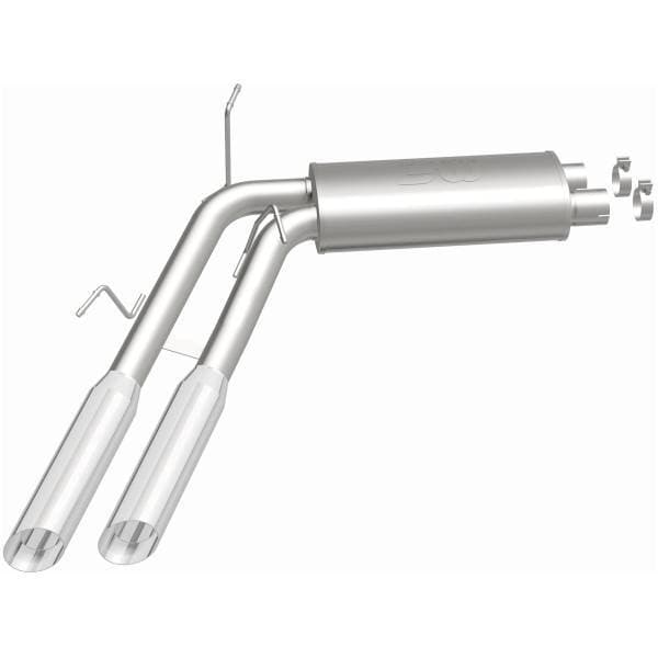 The MagnaFlow 1999-2003 Ford F-150 Street Series Cat-Back Performance Exhaust System 15714 brings out the personality of your 5.4L 1999-2003 Ford F-150 with our signature resonant, powerful engine tone and dyno-proven performance. Thanks to its fast-flowing, mandrel bent 2.5in. main piping and 1 Straight-Through mufflers ending in a Dual Same Side Before Passenger Rear Tire exit with 3.5in. Polished Welded-On Single Wall Angle Cut Cut Edge tips, this Ford F-150 exhaust kit has the performance chops to match its sporty sound and appearance. Upgrade your ride to the next level with an exhaust that has the pipes to put other Ford F-150's to shame. With this system your vehicle will be producing Very Aggressive exterior and Aggressive interior sound levels while leaving other cars and trucks feeling envious at every stoplight. Exhaust kit 15714 features a cat-back layout that replaces your ride's stock exhaust components from near the catalytic converter on back. Extensive 3D scanning during development has resulted in a direct-fit design that you can easily install yourself. 15714 is produced using CNC precision robotic manufacturing techniques and is backed by MagnaFlow's 1-year limited finish warranty and limited lifetime construction warranty.
