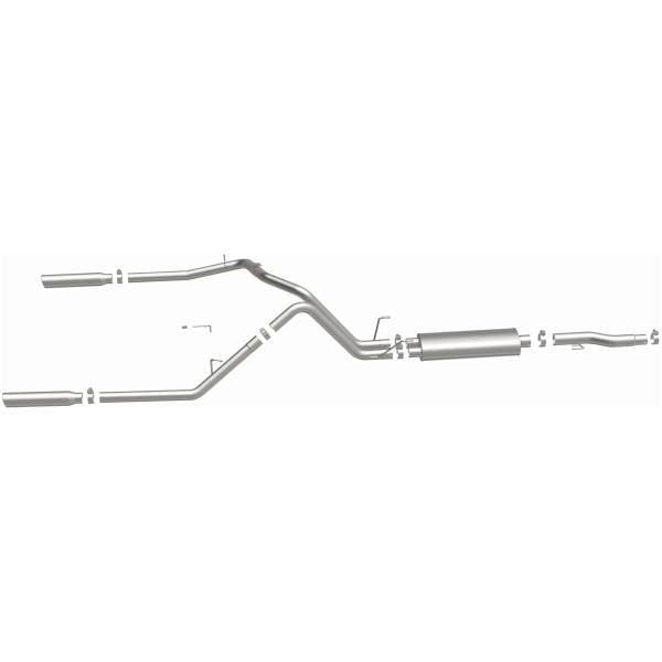 The MagnaFlow 2002-2003 Dodge Ram 1500 Street Series Cat-Back Performance Exhaust System brings out the personality of your 4.7L, 5.9L 2002-2003 Dodge Ram 1500 with our signature resonant, powerful engine tone and dyno-proven performance. Thanks to its fast-flowing, mandrel bent 3in. main piping and 1 Straight-Through mufflers ending in a Dual Split Rear exit with 3.5in. Polished Clamp-On Single Wall Angle Cut Rolled Edge tips, this Dodge Ram 1500 exhaust kit has the performance chops to match its sporty sound and appearance. Upgrade your ride to the next level with an exhaust that has the pipes to put other Dodge Ram 1500's to shame. With this system your vehicle will be producing Aggressive exterior and Moderate interior sound levels while leaving other cars and trucks feeling envious at every stoplight. Exhaust kit 15813 features a cat-back layout that replaces your ride's stock exhaust components from near the catalytic converter on back. Extensive 3D scanning during development has resulted in a direct-fit design that you can easily install yourself. 15813 is produced using CNC precision robotic manufacturing techniques and is backed by MagnaFlow's 1-year limited finish warranty and limited lifetime construction warranty.
