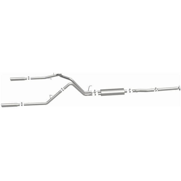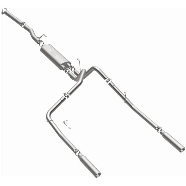 The MagnaFlow 2003 Dodge Ram 1500 Street Series Cat-Back Performance Exhaust System 15788 brings out the personality of your 5.7L 2003-2003 Dodge Ram 1500 with our signature resonant, powerful engine tone and dyno-proven performance. Thanks to its fast-flowing, mandrel bent 3in. main piping and 1 Straight-Through mufflers ending in a Dual Split Rear exit with 3.5in. Polished Clamp-On Single Wall Angle Cut Rolled Edge tips, this Dodge Ram 1500 exhaust kit has the performance chops to match its sporty sound and appearance. Upgrade your ride to the next level with an exhaust that has the pipes to put other Dodge Ram 1500's to shame. With this system your vehicle will be producing Aggressive exterior and Moderate interior sound levels while leaving other cars and trucks feeling envious at every stoplight. Exhaust kit 15788 features a cat-back layout that replaces your ride's stock exhaust components from near the catalytic converter on back. Extensive 3D scanning during development has resulted in a direct-fit design that you can easily install yourself. 15788 is produced using CNC precision robotic manufacturing techniques and is backed by MagnaFlow's 1-year limited finish warranty and limited lifetime construction warranty.