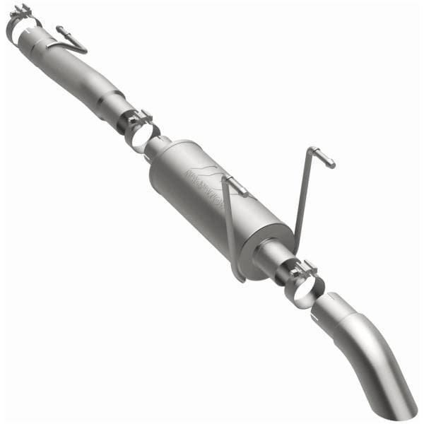 The MagnaFlow 2006-2007 Dodge Ram 1500 Off-Road Pro Series Cat-Back Performance Exhaust System brings additional off-roading prowess and our deep signature exhaust note to your 5.7L 2006-2007 Dodge Ram 1500 with a weight-optimized, dyno-tested, corrosion resistant and durable stainless steel design engineered to closely hug the undercarriage for improved ground clearance. Exhaust kit 17117 is engineered to produce Very Aggressive exterior and Aggressive interior sound levels. Extensive 3D scanning was used during the development of this Dodge Ram 1500 exhaust system to create a direct-fit design, enabling a do-it-yourself installation process. 17117's emissions-legal cat-back design replaces all your truck's exhaust components from the catalytic converter on back with its 3in. diameter mandrel bent main piping that passes through 1 Straight-Through mufflers before ending in a turndown before rear axle exit with 3in. Satin Clamp-On Single Wall Turndown Cut Edge tips. Exhaust system 17117 is produced using advanced CNC precision robotic manufacturing techniques and backed by MagnaFlow's limited lifetime warranty.