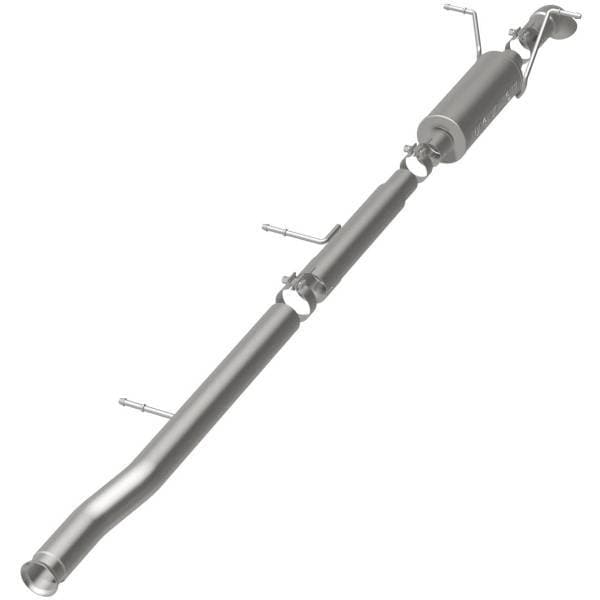 The MagnaFlow Off-Road Pro Series Cat-Back Performance Exhaust System 17102 brings additional off-roading prowess and our deep signature exhaust note to your Truck with a weight-optimized, dyno-tested, corrosion resistant and durable stainless steel design engineered to closely hug the undercarriage for improved ground clearance. Exhaust kit 17102 is engineered to produce Very Aggressive exterior and Aggressive interior sound levels. Extensive 3D scanning was used during the development of this Truck exhaust system to create a direct-fit design, enabling a do-it-yourself installation process. 17102's emissions-legal cat-back design replaces all your truck's exhaust components from the catalytic converter on back with its 3in. diameter mandrel bent main piping that passes through 1 Straight-Through mufflers before ending in a turndown before rear axle exit with 3in. Satin Clamp-On Single Wall Turndown Cut Edge tips. Exhaust system 17102 is produced using advanced CNC precision robotic manufacturing techniques and backed by MagnaFlow's limited lifetime warranty.