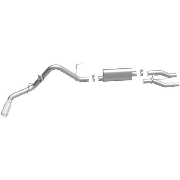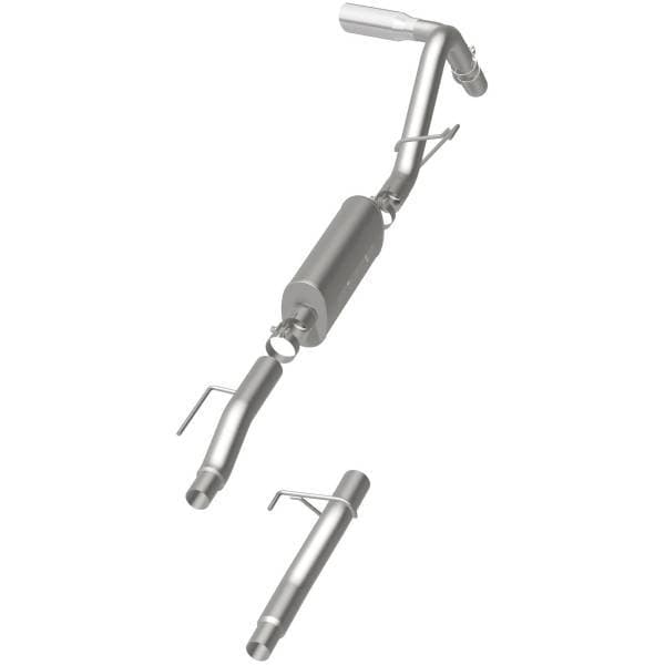 The MagnaFlow Street Series Cat-Back Performance Exhaust System 16518 brings out the personality of your Truck with our signature resonant, powerful engine tone and dyno-proven performance. Thanks to its fast-flowing, mandrel bent 3in. main piping and 1 Straight-Through mufflers ending in a Single Passenger Side Rear exit with 4in. Polished Welded-On Double Wall Angle Cut Rolled Edge tips, this Truck exhaust kit has the performance chops to match its sporty sound and appearance. Upgrade your ride to the next level with an exhaust that has the pipes to put other Truck's to shame. With this system your vehicle will be producing Moderate exterior and Mild interior sound levels while leaving other cars and trucks feeling envious at every stoplight. Exhaust kit 16518 features a cat-back layout that replaces your ride's stock exhaust components from near the catalytic converter on back. Extensive 3D scanning during development has resulted in a direct-fit design that you can easily install yourself. 16518 is produced using CNC precision robotic manufacturing techniques and is backed by MagnaFlow's 1-year limited finish warranty and limited lifetime construction warranty.