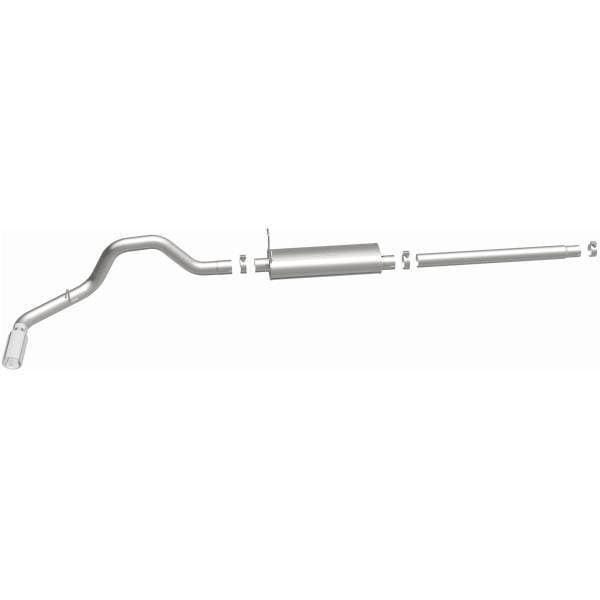 The MagnaFlow Street Series Cat-Back Performance Exhaust System 15609 brings out the personality of your 4.6L, 5.4L 1997-2004 Ford with our signature resonant, powerful engine tone and dyno-proven performance. Thanks to its fast-flowing, mandrel bent 3in. main piping and 1 Straight-Through mufflers ending in a Single Passenger Side Rear exit with 4in. Polished Welded-On Double Wall Angle Cut Rolled Edge tips, this Ford exhaust kit has the performance chops to match its sporty sound and appearance. Upgrade your ride to the next level with an exhaust that has the pipes to put other Ford's to shame. With this system your vehicle will be producing Moderate exterior and Mild interior sound levels while leaving other cars and trucks feeling envious at every stoplight. Exhaust kit 15609 features a cat-back layout that replaces your ride's stock exhaust components from near the catalytic converter on back. Extensive 3D scanning during development has resulted in a direct-fit design that you can easily install yourself. 15609 is produced using CNC precision robotic manufacturing techniques and is backed by MagnaFlow's 1-year limited finish warranty and limited lifetime construction warranty.