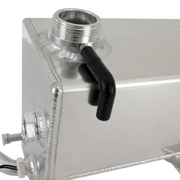 Two decades of heat cycling plastic components, such as your factory degas tank, will undoubtedly make them brittle and discolored. If your factory plastic degas tank is leaking, you’re sick of seeing that ugly yellow plastic, or want to go single big turbo and need more space, then look no further. The Mishimoto aluminum degas tank for 2001-2007 Chevy/GMC 6.6L Duramax (LB7/LLY/LBZ) solves all these problems.----Designed with durability, style, and clearance for big turbos in mind. The fully TIG-welded aluminum construction ensures this will be the last time you need to replace your degas tank, and will spruce up your engine bay in the process. We specifically designed this tank to fit with big single turbos without any trimming or worry about melting your tank. The available micro-wrinkle black powder coated finish is perfect for a clean, stealthy look