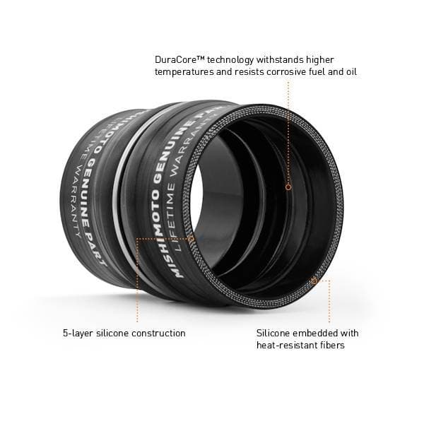 Mishimoto has released a direct-fIt'silicone boot kit with DuraCore technology designed specifically for the 5.9L Dodge Cummins.The inline-6 Cummins is well known for its smooth power delivery, which can be disrupted suddenly by a blown intercooler boot.Keep your truck on the road by upgrading to the Mishimoto factory-fit DuraCore boot kit.Mishimoto DuraCore technology is the synthetic material that comprises the innermost layer of all Mishimoto silicone diesel boots.Compared to normal silicone, DuraCore provides superior resistance to heat, pressure, fuel, and oil.This effectively increases the life of our boots by preventing leaks and blowouts.To add even more reliability this kit includes Mishimoto constant-tension T-bolt clamps for accurate and consistent holding power.The Mishimoto boot kit retains factory fitment for ease of installation and is protected by the Mishimoto lifetime warranty.