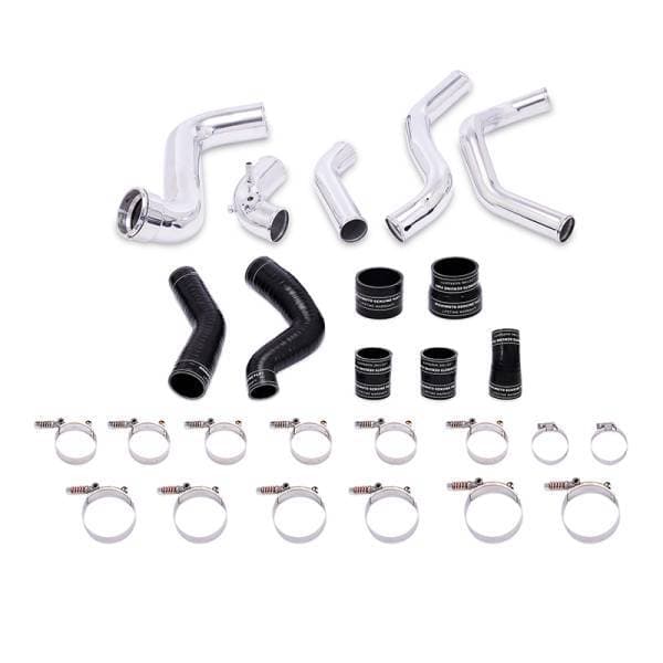 Cool down those charge air temperatures with the Mishimoto direct-fit performance intercooler and pipe kit for the 2011-2014 Ford F-150 EcoBoost. The small, factory intercooler sits in the bottom part of a spacious and unconventionally shaped cavity behind the front bumper, which means There's a lot of wasted space there that could be used for cooling improvements. That?s why the Mishimoto intercooler has been cleverly engineered with a unique angled design to take full advantage of the space for maximum performance. This intercooler boasts an 88-percent increase in core size, 66-percent increase in internal core volume, and 40-percent increase in external fin surface area. The Mishimoto intercooler lowers intake temperatures by 50?F (28?C) compared to the factory part. But of course, no intercooler is complete without a set of pipes to complement it. This kit also includes Mishimoto 2011?2014 F?150 EcoBoost Intercooler Pipes which are an ideal upgrade in reliability and performance. Accompanied by silicone couplers with DuraCore? technology, Mishimoto's F?150 EcoBoost intercooler piping is engineered to eliminate restrictive bends while improving durability and airflow. Compared to normal silicone, DuraCore? provides superior resistance to heat, pressure, fuel, and oil. These pipes alone have been dyno proven to provide your truck with up to 15 more horsepower and 21 Ft/lbs more torque.Of course, this kit is backed by our Mishimoto Lifetime Warranty, so you never need to worry about buying another intercooler and pipe kit again.