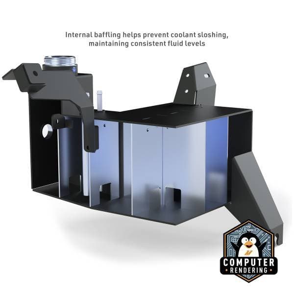 The factory expansion tank on your 2019+ Ram 6.7L Cummins is a weak point in an otherwise durable cooling system. Made from plastic, the stock tank becomes brittle over time and is prone to cracking, discoloration, and internal degradation after thousands of heat cycles. Mishimoto’s aluminum expansion tank is built to solve that problem before it starts. Its TIG-welded construction holds up under high temperatures and heavy use, while internal baffles prevent coolant starvation and reduce the risk of air pockets that can harm engine cooling.--To make installation simple, this expansion tank fits directly in place of the factory unit and does not require draining the entire cooling system. No specialty tools are needed, and all necessary provisions for factory sensors are included. That includes an OEM-style level sensor that allows the truck’s stock low coolant warning system to function exactly as intended.--Beyond durability and ease of install, this expansion tank gives your engine bay a cleaner, more finished look. The Mishimoto expansion tank is available in either micro-wrinkle black or a natural finish, for easy customization through powder-coating, anodizing, or hydro-dipping. It replaces the aging plastic tank with something built to last and designed to look good doing it.--Like all of our products, this expansion tank is backed by the Mishimoto Lifetime Warranty.