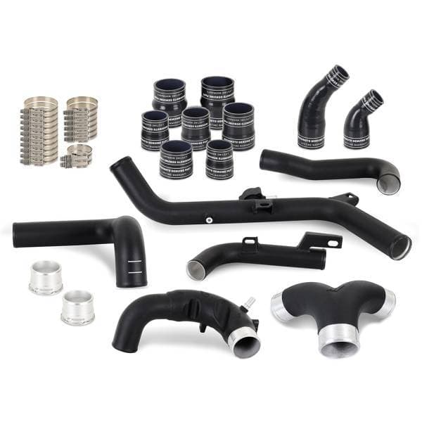 The classic Ford Bronco is an American icon, a beacon of fun, and a capable off-road vehicle to take you anywhere with the top down and wind blowing. When Ford introduced the new Bronco, it surely kept this spirit alive, but with some much-needed modern-day updates, like getting more than 5 mpg, for example. They achieved this by utilizing the EcoBoost family of engines. As great as the new Bronco is, there is always room for improvement.----To give the Bronco some extra pep in its step, we’ve bundled two of our performance intercooler components to make the ultimate air-charge-cooling bundle for your 2.7L EcoBoost! The Mishimoto Performance Intercooler and Intercooler Pipe & Boot Kit bundle improves power and durability compared to the factory intercooler and pipes. The Mishimoto Performance Intercooler features a huge 4.7-inch thick core, CNC-machined 6061 aluminum flanges, and precision TIG-welded cast aluminum end tanks. Combined, this makes for a robust intercooler that, compared to the plastic end tank factory tube-and-fin intercooler, has far greater durability. More durability is always a good thing, but it’s even better when it’s backed up with performance.----The Mishimoto Performance Intercooler and Intercooler Pipe & Boot Kit bundle reduces outlet temperatures by 21.2-degrees and provides an increase in flow of 7-percent over stock. All of this combined generates gains of 13.6 HP and 16.7 lb-ft torque. We saw an especially good improvement in our trail simulation heat-soak testing where, after 6 back-to-back dyno runs, we still saw outlet temperatures 20-degrees cooler than stock.----What this all means is that in the real world, whether sitting in traffic or out on the trails, you’ll see improvements in performance. All functionality of adaptive cruise control and 360-degree cameras are retained. As with all of our products, the Mishimoto Performance Intercooler is backed by our signature Mishimoto Lifetime Warranty.