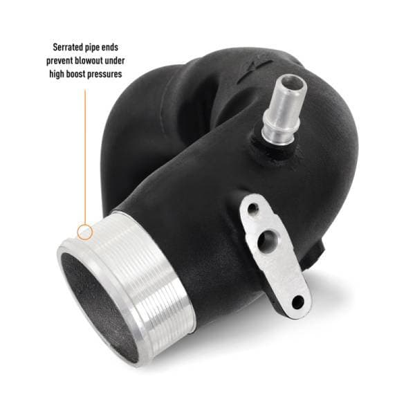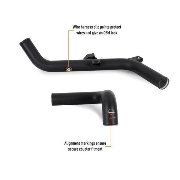 The Bronco is back, and with two powerful turbocharged engines, it was born to run free. The larger of the two EcoBoost engines, the 2.7L twin-turbo V6, cranks out 330 horsepower and 325 lb.-ft. of torque, making it capable both on and off-road. But what enthusiast doesn’t want more from their vehicle? We here at Mishimoto are never ones to settle for stock, so that’s why we’ve developed these performance intercooler pipes for your 2021+ Ford Bronco 2.7L EcoBoost.----Our intercooler pipes are constructed from cast and mandrel-bent aluminum for unsurpassed durability. Unlike the stock plastic pipes, our cast-aluminum hot-side Y-pipe and throttle body inlet provide superior resistance to cracking after thousands of heat cycles. For even more durability, we’ve replaced the factory rubber sections with mandrel-bent aluminum for significantly increased boost tolerance. Serrated coupler connections at the Y-pipe and throttle body ensure your boost stays where you want it under even the most extreme conditions.----But durability isn’t the only benefit these pipes offer. The Mishimoto performance intercooler pipes reduce restriction by up to 34.2-percent over the stock pipes. That increase in flow allows your Bronco to pull in more air for power gains of over 5 HP and 6.1 lb-ft. of torque on the stock tune.----If you’re ready to let your 2021+ Ford Bronco 2.7L EcoBoost breathe as free as it can run, these Mishimoto Performance Intercooler Pipes are for you. And, like all Mishimoto products, they’re backed by our Lifetime Warranty, so you can drive easy knowing we’ve got you covered.